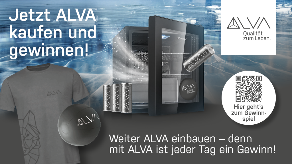 Macht mit bei unserem ALVA Gewinnspiel und sichert euch die Chance auf einen von 70 ALVA Mini-Kühlschränken, gefüllt mit belebenden ALVA Energy Drinks. Die ideale